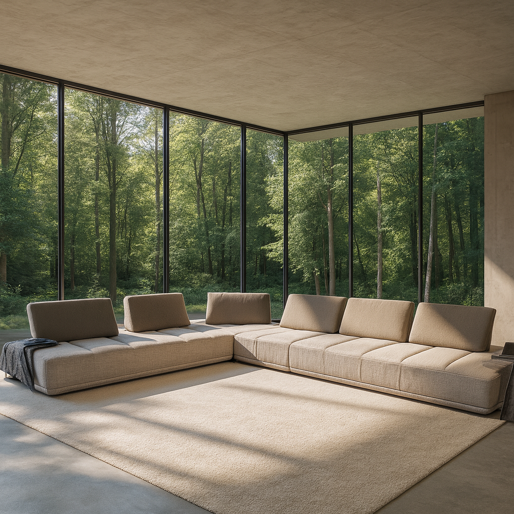 Este sillón presenta tela con textura agradable y piel blanca en el respaldo y brazos, aportando elegancia. Los elementos del respaldo y brazos son separables para mayor personalización. Su forma orgánica y cómoda invita a sentarse y relajarse.