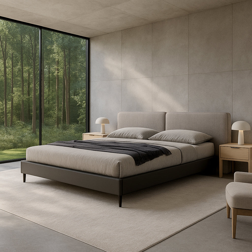 Esta cama, diseñada con originalidad y estilo vanguardista, está inspirada en la fusión de materiales y cuenta con una tapicería de tela y detalles en metal para ofrecer una pieza única y moderna en la decoración de su habitación.