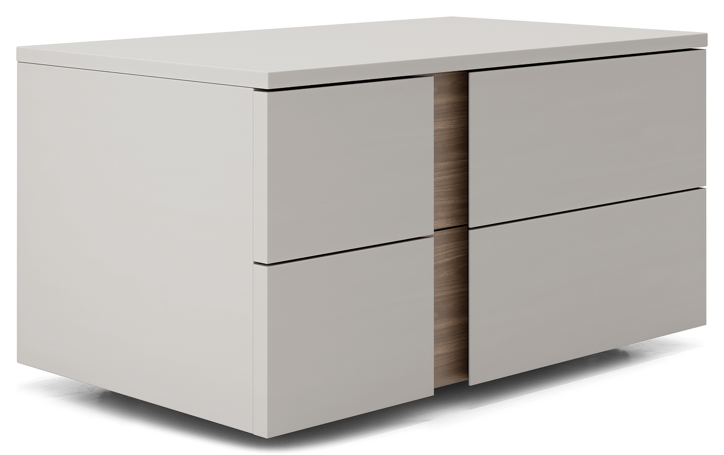 PRODUCTO PERSONALIZABLE Este buró diseñado con originalidad y detalle está inspirado en la sencillez con un toque de sofisticación, presenta una franja de madera natural que contrasta con la madera laqueada en tono beige para brindar un estilo único y refinado a la decoración de su hogar.